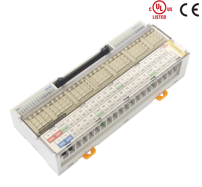 中型继电器端子(R4Q-24V/R16Q/R2G-24V/R4G-24V/R4G-E/R8G-24V/R16G/R16G-F/R16G-EF/R32G 系列):搭载松下(PANASONIC PQ)、欧姆龙(OMRON G6B)继电器